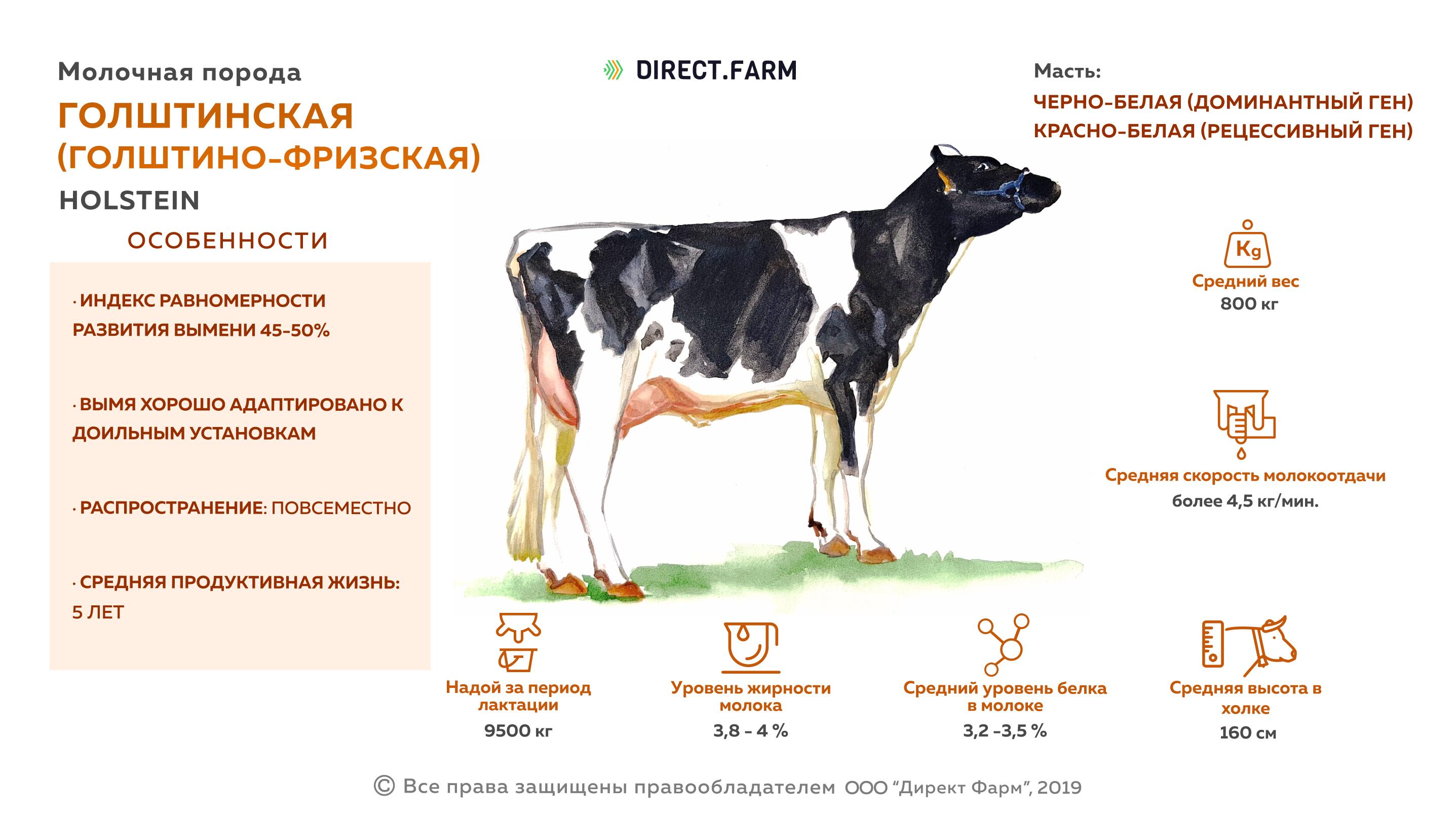 Благодаря непревзойденному производству, большим доходам по сравнению с расходами на корма, высокой генетической ценности и способности адаптироваться к широкому спектру условий окружающей среды, голштинская порода признана лидером среди молочных пород во всем мире. В настоящее время животных голштинской породы разводят в 63 странах мира. Более 22 миллионов животных зарегистрированы в племенной книге голштинской ассоциации.