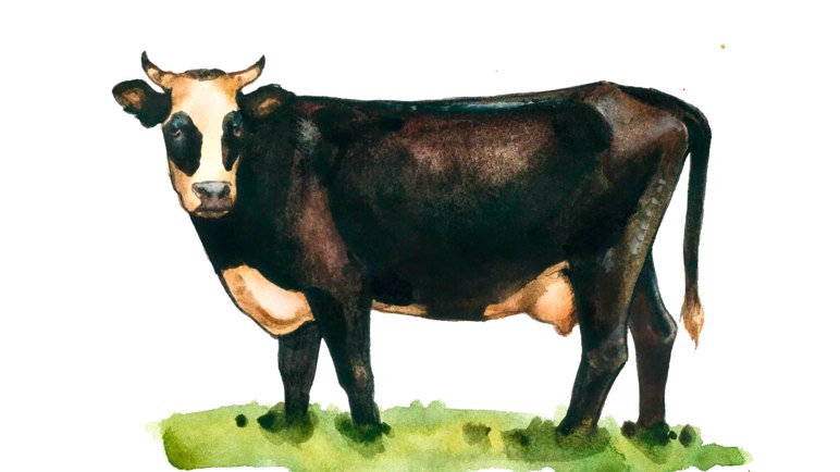 Как правило, масть ярославского скота черно-белая. Черный цвет покрывает практически все тело животного, кроме низа живота, конечностей, головы и хвоста – эти участки украшены белым цветом.