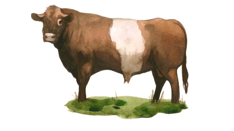 Необычная порода черной или красной масти с характерным белым поясом вокруг поясницы и живота. Бывают рогатыми и комолыми. Телосложение средних размеров, живая масса быков - 630–820 кг, коров – 450–550 кг, новорожденных телят – 30–35 кг. Для отъема телята должны достигнуть 50% от массы матери.