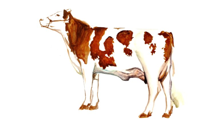 Молочная. Вымя монбельярдов принято считать хорошо развитым и устойчивым к маститу. По сравнению с голштинской породой, они имеют более прочную структуру молочной железы. Скорость молокоотдачи 2,5 - 3,5 кг/мин. Индекс равномерности развития вымени – 44 - 48%. Средний надой – 9500 кг, жирность молока – 3,4-3,9%, уровень белка в молоке – 3,0-3,5%.