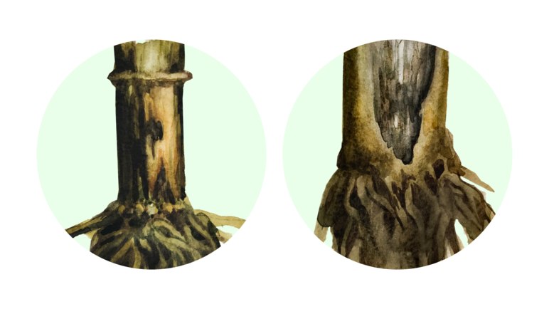 Мицелий гриба, распространяясь в эпидерме и паренхиме стебля, разрушает его структуру. Он локализуется преимущественно в проводящей системе главного корня, корневой шейке и нижней части стебля. Приводит к полному разрушение паренхимы корней и 2-3 нижних междоузлий, на сосудистых пучках и под эпидермисом на стеблях образуются многочисленные склероции черного цвета.