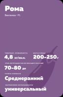 Рома F1 - гибрид баклажана (Solanum melongena L.). Гибрид среднеспелый. Форма: элипсовидный. Использование: для свежего потребления. Рекомендуется для открытого грунта и пленочных теплиц.