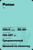 - Отличается низкой скоростью прорастания семян и темпами роста в начальные фазы развития. Поэтому, основным способом его посева является разбросной, с послепосевным прикатыванием гладкими катками. При выращивании сорта Рапан по технологии без применения противозлаковых гербицидов необходима заделка семян на глубину не более 0,5-0,7 см и сброс вод на 1-2 суток в фазе шильца.
