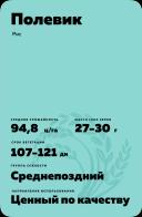 - Относится к среднепозднеспелой группе. Вегетационный период 114 - 118 дней.