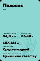 - Среднеспелый, вегетационный период на уровне сорта Спальчикреили на 2-3 дня длиннее. Вегетационный период – 116-120 дней.