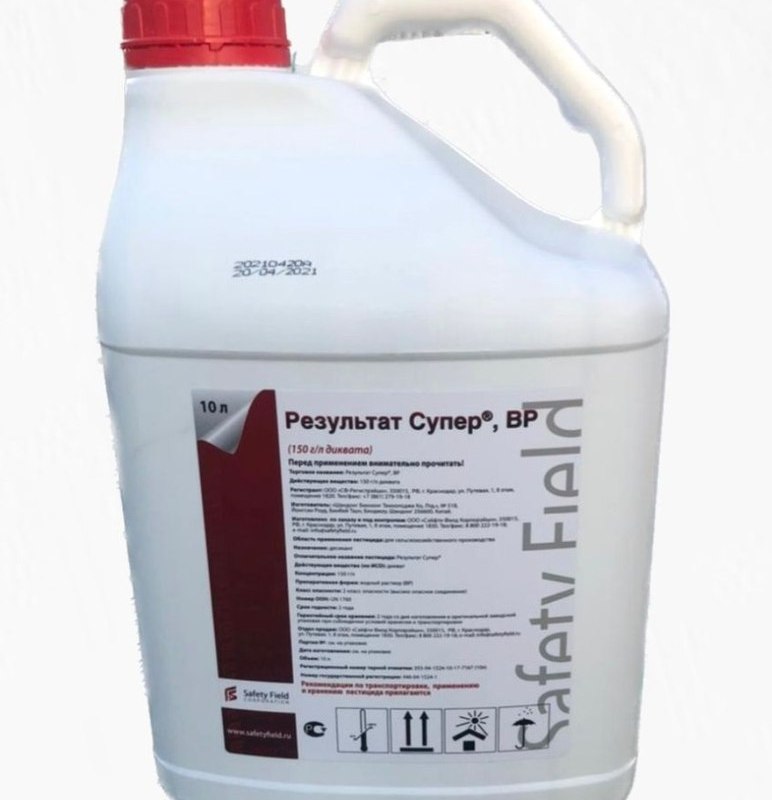 Период защитного действия: препарат Результат Супер, ВР вызывает полное высыхание растения в течение 7-14 дней. Защитное действие против однолетних сорняков сохраняется до появления новой волны проростков.