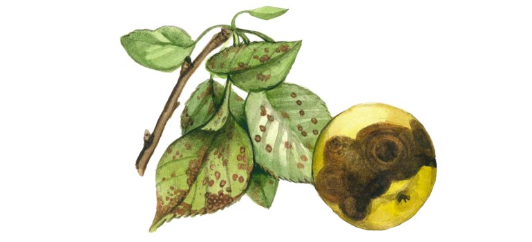 - Заражение плода приводит к гниению сердцевины, ткани пробковеют, плод деформируется, становится некондиционным. Потери урожая. Накопление грибных токсинов (альтернариол, монометиловый эфир альтернариола) в яблоках и яблочном соке.