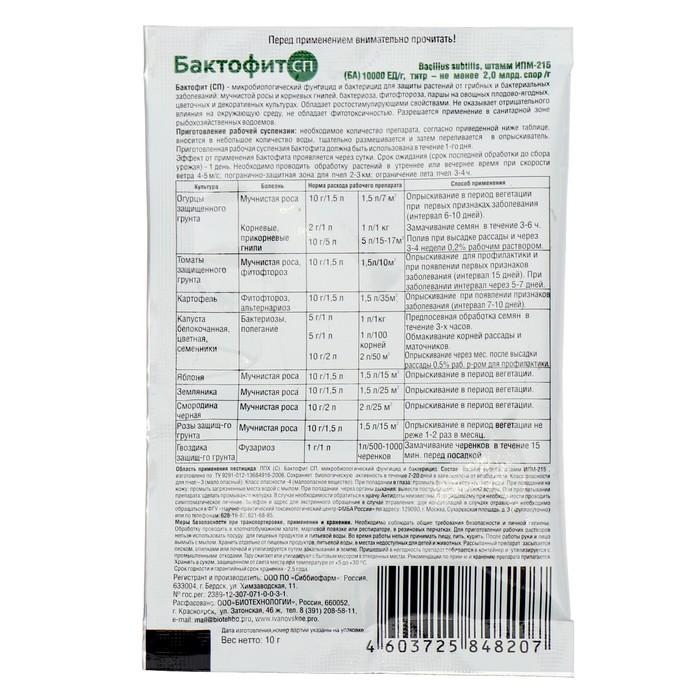 Срок хранения: Бактофит®, СП – 2,5 года при температуре от -30 до +30˚С.