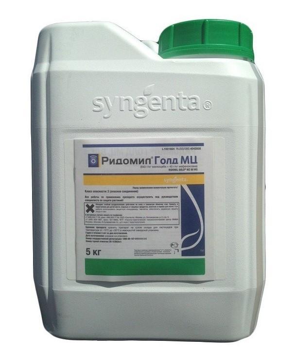 Ридомил Голд МЦ, ВДГ - фунгицид системного и контактного действия для защиты картофеля и томатов от фитофтороза и альтернариоза, огурца и лука — от пероноспороза, винограда — от милдью.