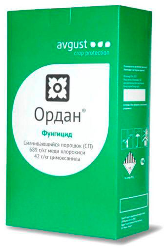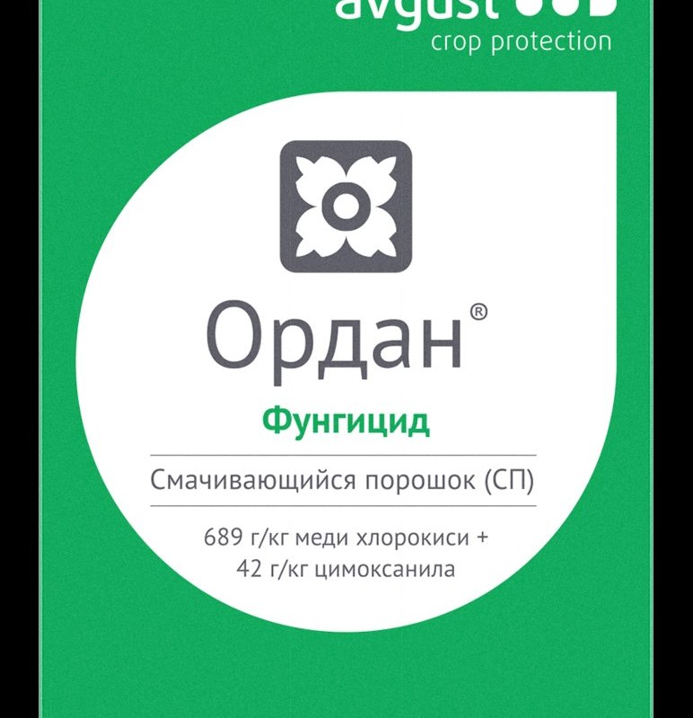 Механизм действия препарата: благодаря содержанию двух активных компонентов с различным механизмом подавления возбудителей болезней, Ордан обладает профилактическим, лечащим и искореняющим действием. Хлорокись меди (контактный компонент) угнетает ферменты и жизненно важные компоненты клеток фитопатогенных грибов. Цимоксанил (локально-системный компонент) проникает в листья в течение одного часа и ингибирует биосинтез РНК в клетках патогенов.