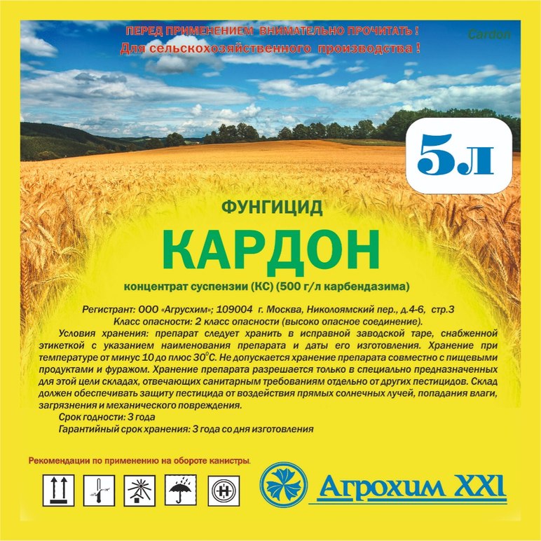 Механизм действия: фунгитоксическое действие заключается в торможении процессов деления клеток и основано на ингибировании развития ростковых трубочек, формировании аппрессорий и роста мицелия; при обработке семян карбендазим быстро поглощается через оболочку семени, проникая в эмбрион, а затем в проводящую систему развивающегося растения, а при опрыскивании посевов абсорбируется через стебли, листья и корни, перемещается акропетально транспирационным потоком по ксилеме и обеспечивает гибель клеток патогена.