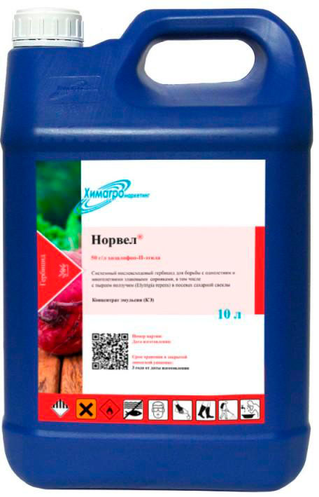 Норвел, КЭ - системный послевсходовый гербицид для борьбы с однолетними и многолетними злаковыми сорняками в посевах сахарной свеклы.