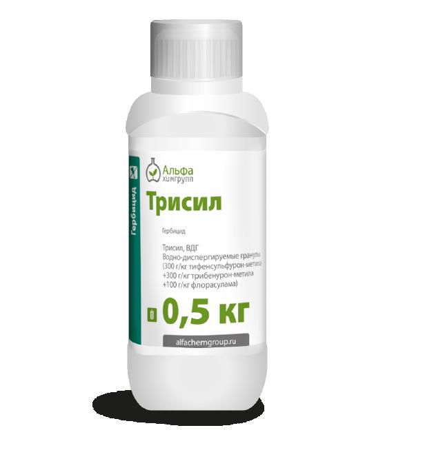Трисил, ВДГ - трехкомпонентный послевсходовый гербицид системного действия для защиты посевов зерновых колосовых культур от однолетних и многолетних двудольных сорняков.