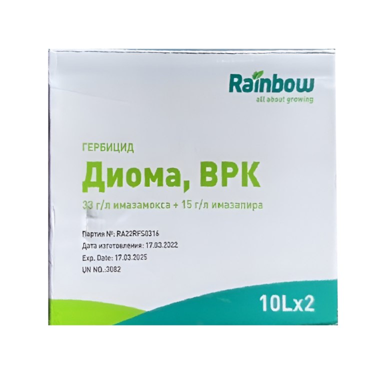 Диома, ВРК - послевсходовый гербицид для защиты гибридов подсолнечника, устойчивых к имидазолинонам, от двудольных и злаковых сорняков.