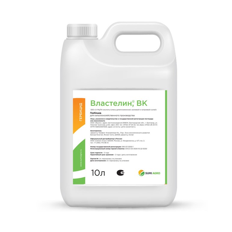 Властелин, ВК - гербицид для борьбы с однолетними двудольными сорняками на посевах зерновых колосовых культур с подсевом многолетних трав, картофеля, гороха и льна-долгунца.