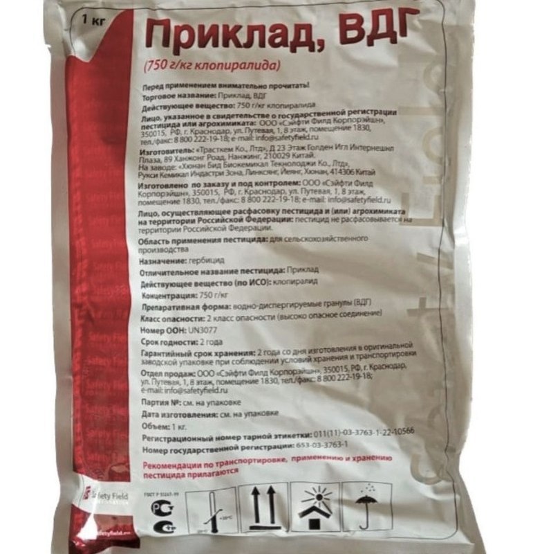Приклад, ВДГ - системный гербицид для послевсходовой борьбы с различными видами ромашки, горца, осота, бодяка.