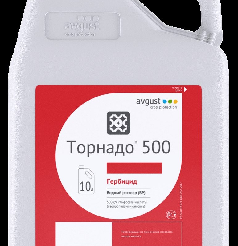 Сроки применения: Торнадо 500 используют для опрыскивания вегетирующих сорняков. Однолетние злаковые наиболее уязвимы при высоте более 5 смдо выхода в трубку, многолетние злаковые – при наличии не менее 5 - 6 листьев и высоте 10 - 20 см; однолетние двудольные – начиная со стадии 2 листьев и до цветения, многолетние двудольные – в фазе розетки до бутонизации и цветения (осоты – в фазе розетки диаметром 10 - 20 см, горчак – в фазе розетки – стеблевания, вьюнок – в фазе розетки 10 - 12 см).