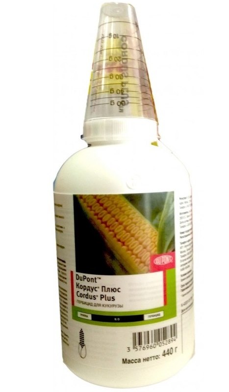 Механизм действия: Кордус Плюс — системный гербицид для послевсходовой борьбы с однолетними и многолетними злаковыми и двудольными сорняками. В составе препарата вещества с различными механизмами действия: сульфонилмочевины, которые блокируют фермент ацетолактатсинтазу, и дикамба, которая нарушает процесс деления клеток у большинства двудольных сорняков. Действующие вещества поглощаются, главным образом, листьями и перемещаются к точкам роста сорных растений. Гербицид останавливает деление клеток в точках роста побегов и корней, в результате чего прекращается рост восприимчивых сорняков через несколько часов после обработки.
