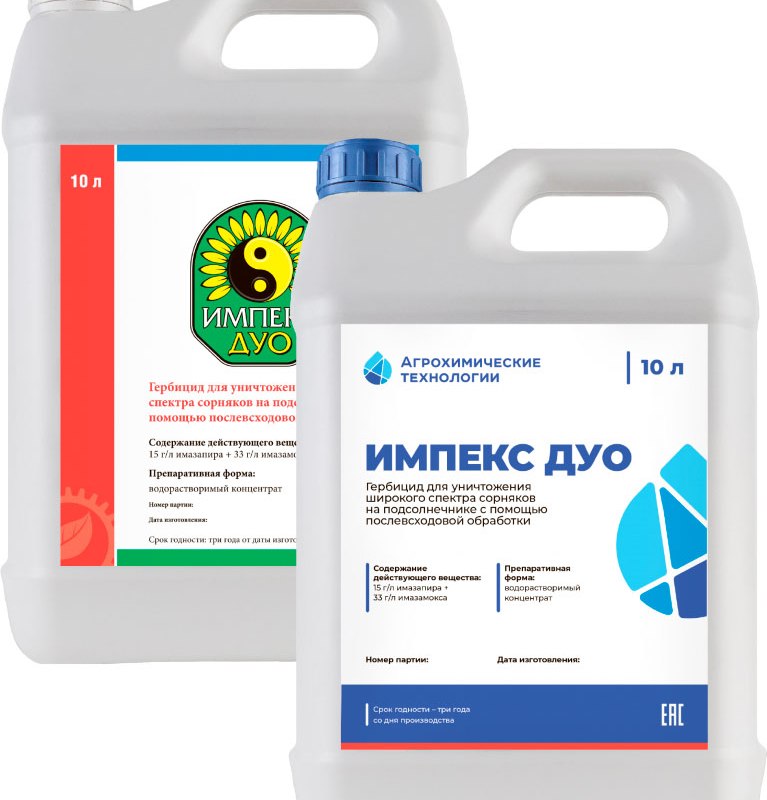 Импекс Дуо, ВРК - послевсходовый гербицид против однолетних злаковых и двудольных сорняков в посевах подсолнечника, устойчивого к имидазолинонам.