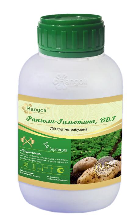 Технологии применения пестицида: перед применением необходимо проверять смесь на совместимость. Ранголи-Гильотина уничтожает многие однолетние двудольные и некоторые злаковые сорняки. Устойчивость к препарату в рекомендованных регламентах использования проявляют картофель, соя. Отдельные сорта могут проявляют различия по сортовой устойчивости. Уничтожает сорняки в момент их прорастания при довсходовом внесении или в течение 10-20 суток при послевсходовом применении. Препарат может оказывать отрицательное действие, если культура испытывает стресс (засуха, переувлажнение на тяжелых почвах, поражение посевов болезнями или вредителями и др.) Обычно это действие имеет временный характер и исчезает в течение 10 дней. Однако при наличии неблагоприятных условий обработку гербицидом лучше отложить. Нет риска возникновения резистентности.