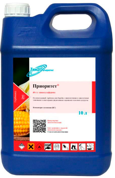 Приоритет, КС - послевсходовый системный гербицид для борьбы с однолетними и многолетними злаковыми и некоторыми однолетними двудольными сорняками в посевах кукурузы.
