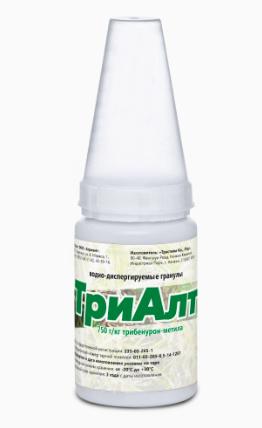 ТриАлт, ВДГ - избирательный гербицид для послевсходовой борьбы с однолетними и многолетними двудольными сорняками, в том числе устойчивых к 2,4-Д и 2М-4Х, на посевах яровых и озимых пшеницы и ячменя, овса.