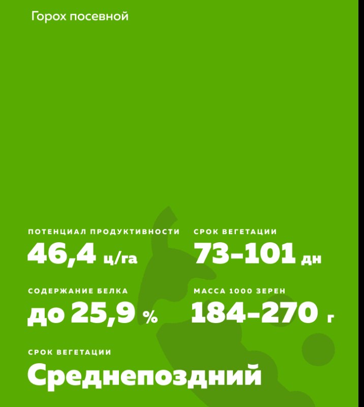 - Масса 1000 семян - 184-270 г. Содержание белка - 24,2-25,9%, хорошая кулинарная оценка.