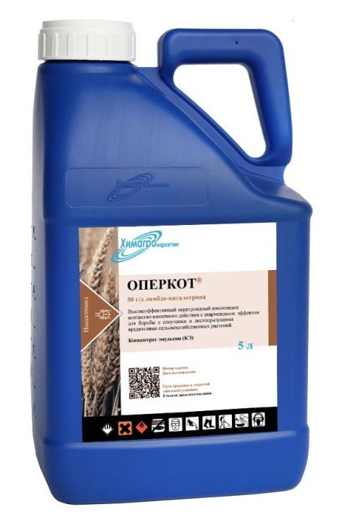 Оперкот, КЭ - инсектицид контактно-кишечного действия с акарицидным эффектом для борьбы с сосущими и листогрызущими насекомыми вредителями сельскохозяйственных растений, а также дезинсекции зернохранилищ и прилегающих территорий.