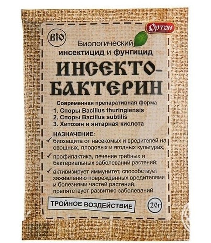 Действие: состав препарата «Инсектобактерин» входит янтарная кислота и хитозан - эффективные стимуляторы роста растений, которые активизируют иммунитет, способствуют заживлению поврежденных вредителями и болезнями частей растений, препятствуют развитию заболеваний.