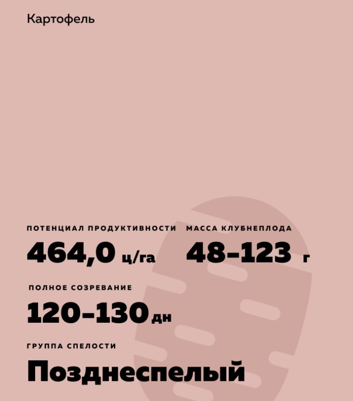 - Ценность сорта: нематодоустойчивость, иммунитет к вирусам, высокое содержание сухих веществ и низкое содержание редуцирующий сахаров (менее 0,15%), по сравнению с другими сортами, обеспечивающее высокую эффективность (выход продукции) при переработке на чипсы, хлопья, соломку, "френч фрайз", хрустящий картофель.