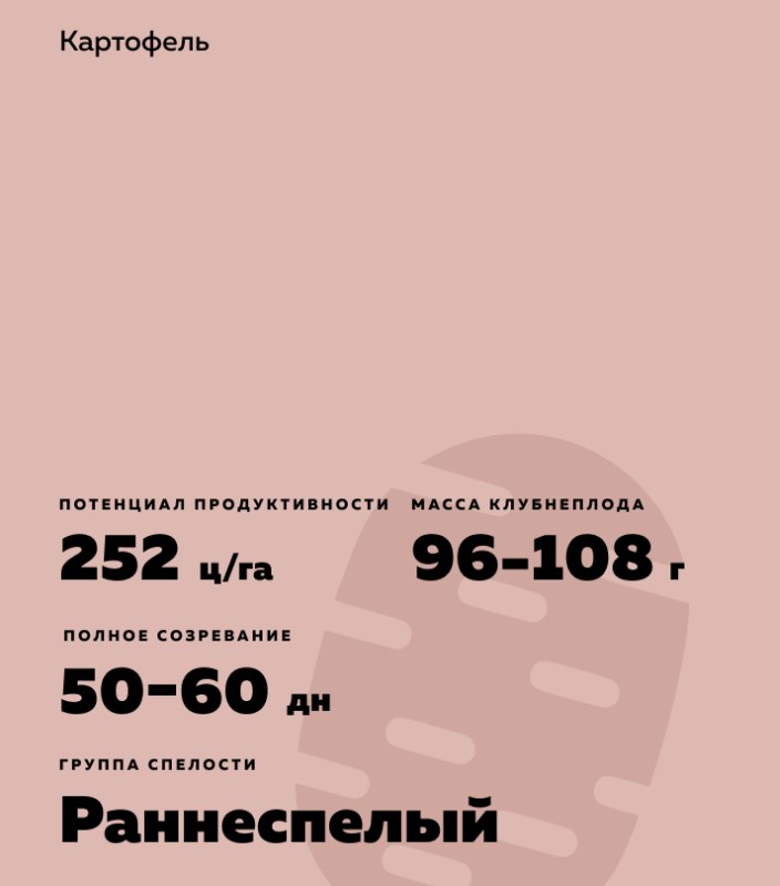 Solanum tuberosum L.). Раннеспелый. Клубень удлиненно-овальный, кожура красная, мякоть светло-жёлтая. Устойчив к возбудителю рака картофеля. Восприимчив к золотистой картофельной цистообразующей нематоде.
