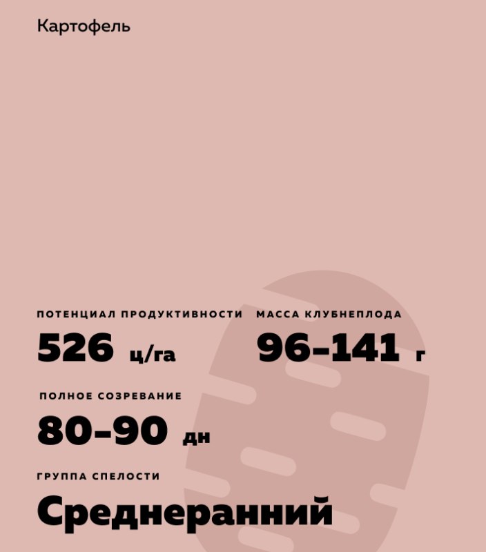 - Среднеранний, столового назначения. Дней от посадки 80-90 дней. Потемнение при варке отсутствует. Изменение цвета после очистки отсутствует.