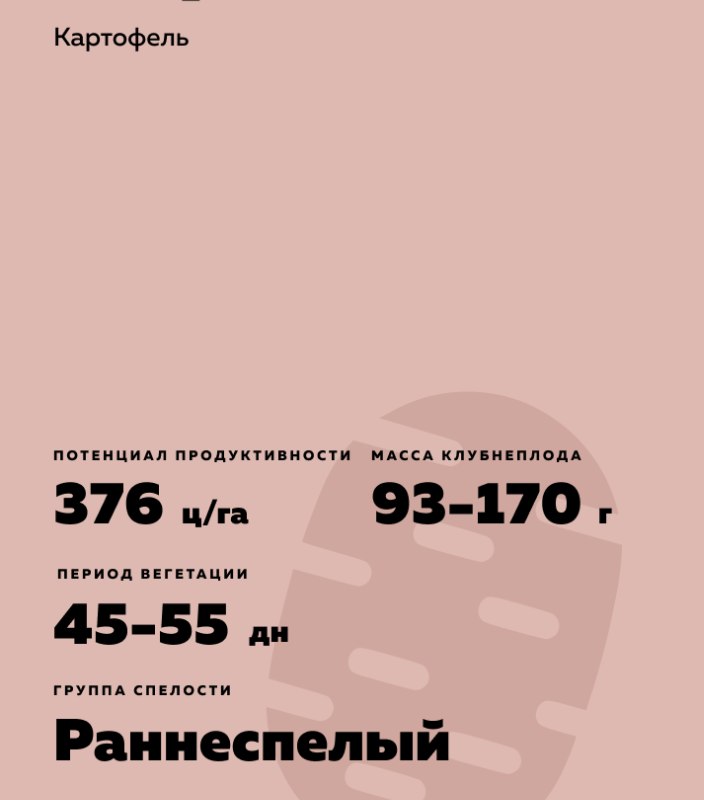 Solanum tuberosum L.). Раннеспелый. Клубень овальный с мелкими глазками. Кожура гладкая, желтая. Мякоть светло-желтая. Устойчив к раку, патотип I и к золотистой картофельной нематоде (R01).