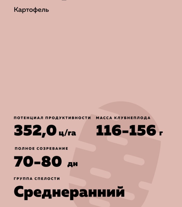 Solanum tuberosum L.). Среднеранний. Клубень очень длинный, кожура светло-бежевая, мякоть кремовая. Устойчив к раку, патотип I и к золотистой картофельной нематоде (R01).