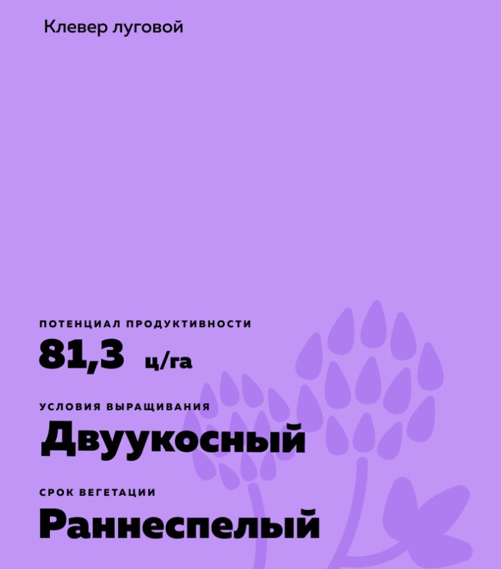 Trifolium pratense L.). Для газонов и на корм, двуукосный.