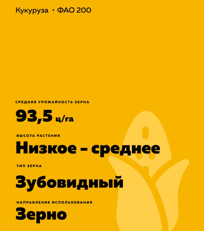 Zea mays L.). Среднеранний. ФАО 200. Высокая устойчивость к полеганию и засухе.