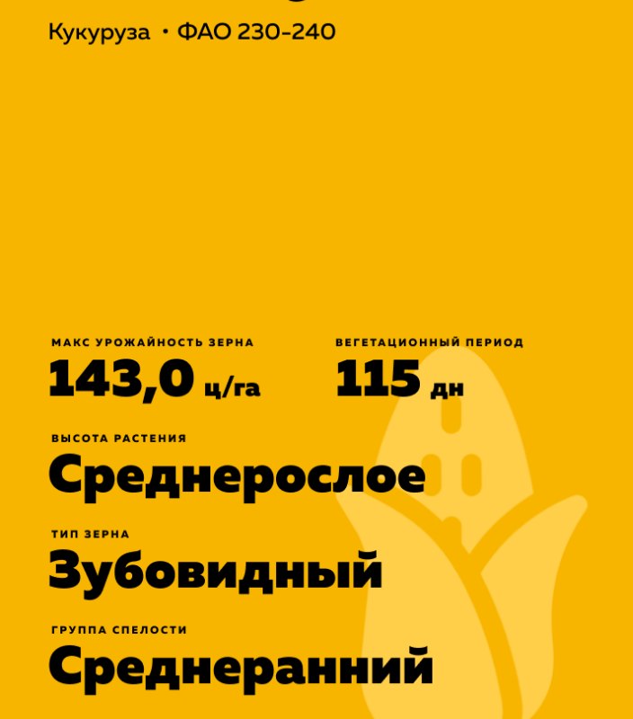 - Среднеранний простой гибрид. Включён в Госреестр по Центрально-Черноземному (5) региону на зерно.