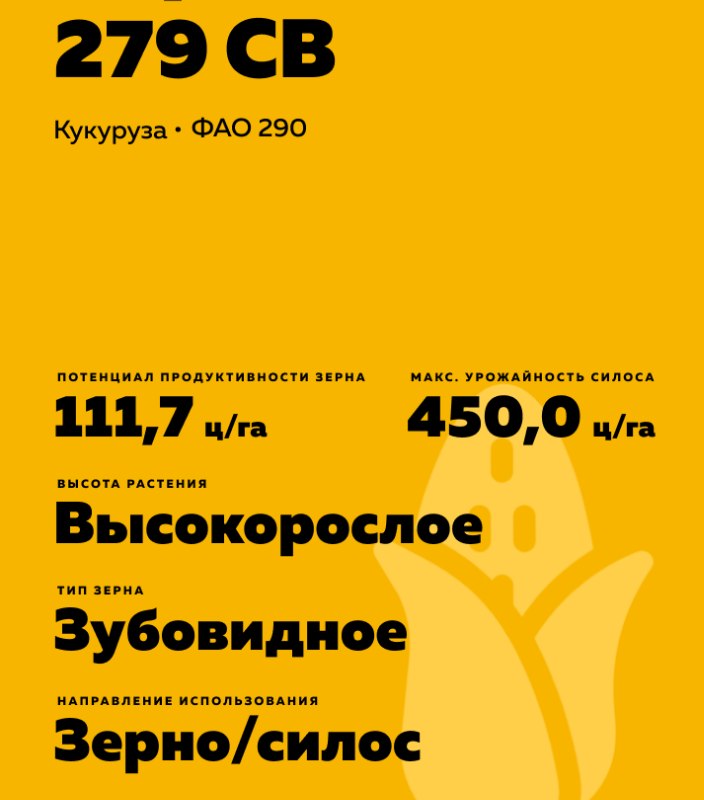 Воронежский 279 СВ ® - гибрид кукурузы (Zea mays L.). Среднеранний ФАО 290, двойной, межлинейный гибрид универсального направления использования.
