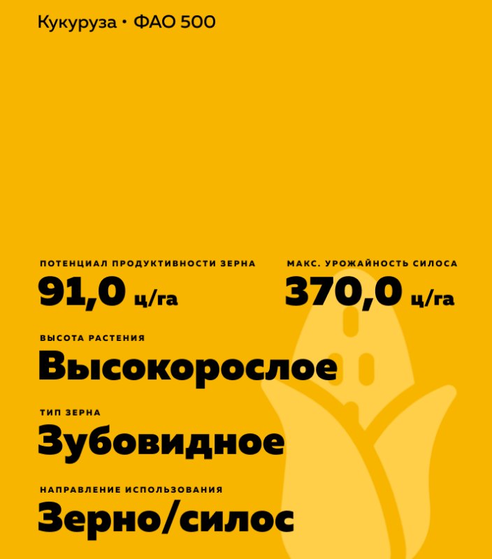 К 500 ® - гибрид кукурузы (Zea mays L.). Позднеспелый ФАО 500, простой гибрид универсального направления использования.