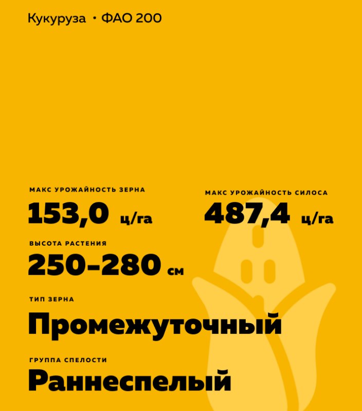 - Растение средней высоты - высокое 250-280 см, лист широкий. Высота прикрепления початка 100-120 см.
