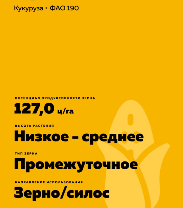 - Растение низкое - среднее 230 см. Устойчив к различным видам полегания.
