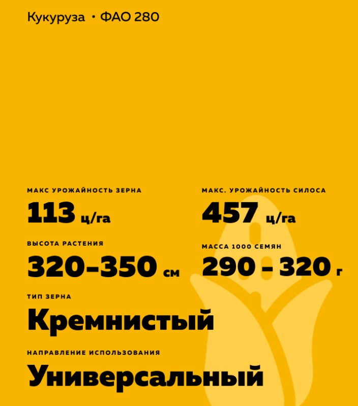 Zea mays L.). Среднеспелый. ФАО 280. Предназначен для получения зерна и силоса.