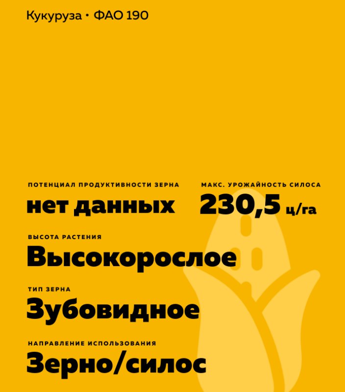 - Включен в Госреестр по Центрально-Черноземному (5) региону на силос, по Северо-Кавказскому (6) региону на зерно и силос.