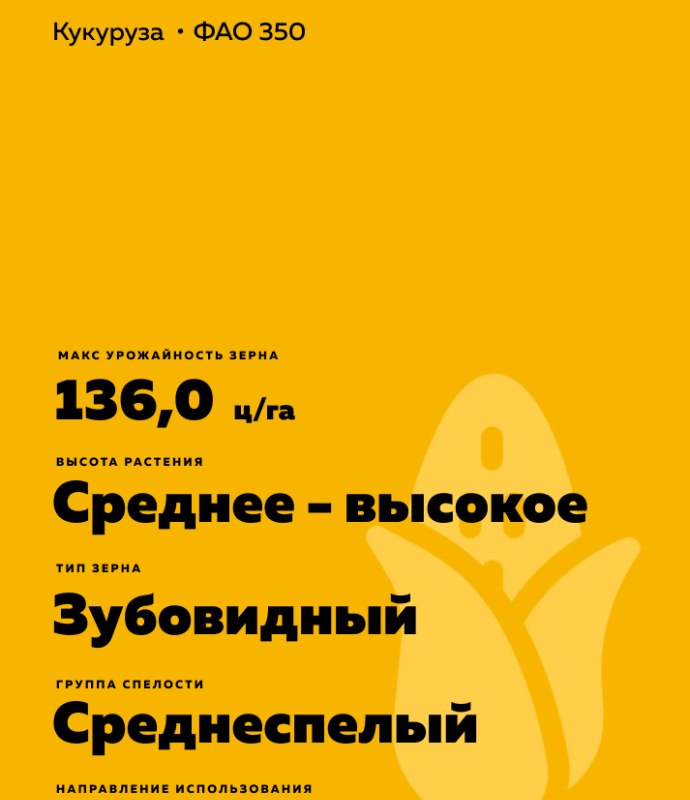 - Тип зерна зубовидный. Антоциановая окраска верхней части зерна желтая, нижней желто-оранжевая. Интенсивность антоциановой окраски стержня початка сильная.