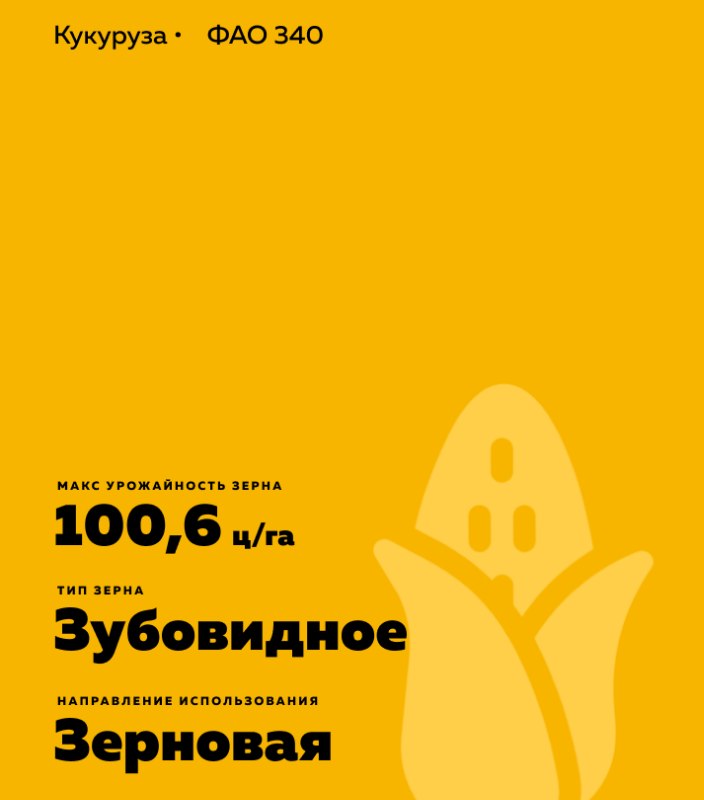 ЕС Миледи - гибрид кукурузы (Zea mays L.). Среднеспелый простой гибрид. ФАО 340. Технология Tropical Dent.