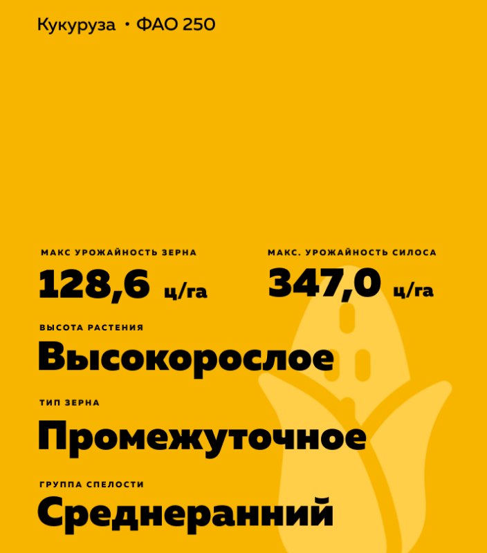 МАС 25. Ф - гибрид кукурузы (Zea mays L.). Среднеранний. ФАО (250). Возможность выращивания по интенсивной и экстенсивной технологий. Тип STAY GREEN.