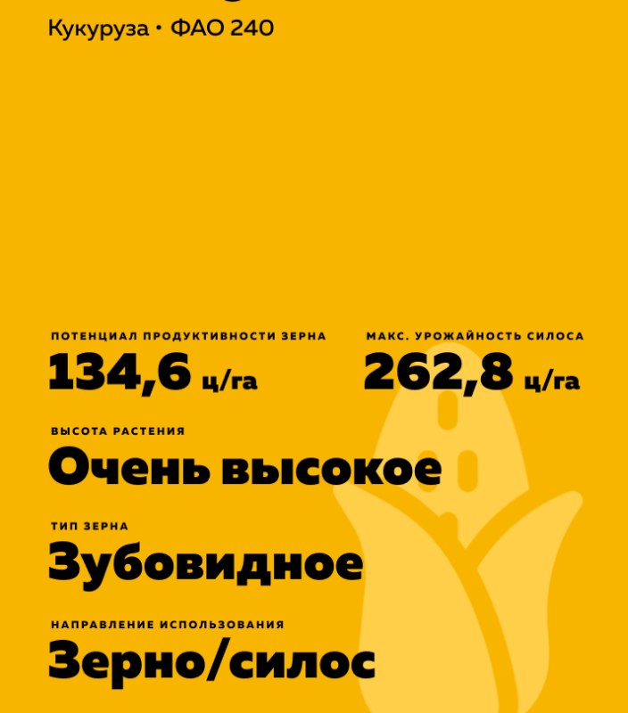- Рекомендован для производства зерна и силоса в регионах с ограниченным периодом вегетации.