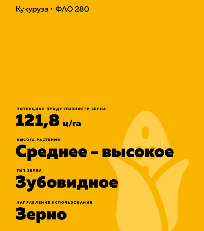 Микси - гибрид кукурузы (Zea mays L.). Простой среднеранний гибрид ФАО 280. Классический гибрид.