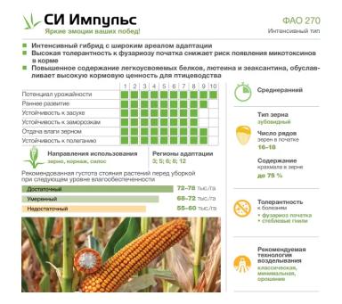 СИ Импульс - гибрид кукурузы (Zea mays L.). Среднеранний. ФАО (270). Интенсивный тип.