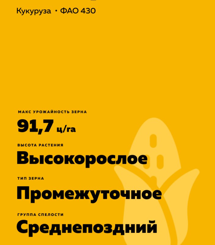 СИ Кариока - гибрид кукурузы (Zea mays L.). Среднепоздний. ФАО (430). Интенсивный тип.